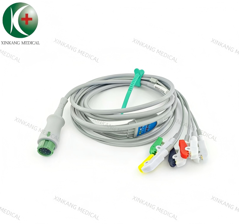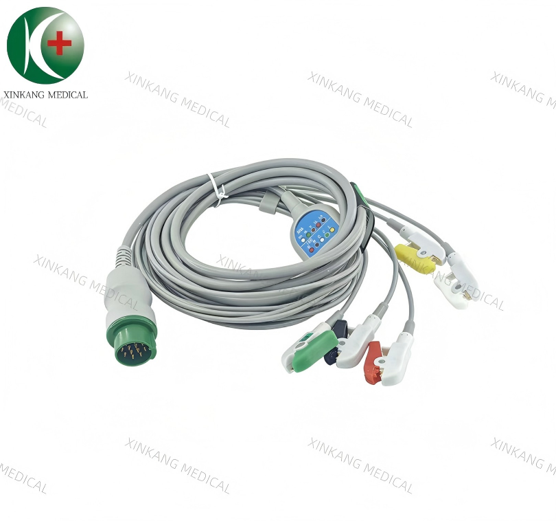 Compatible Mindray T5 12 Pin ECG Cable 5 Leads Clip Type IEC 兼容迈瑞 T5 12针 一体五导心电导联线 夹子 欧标