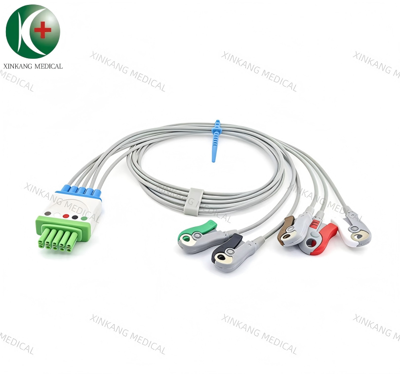 Compatible AAMI 6 Pin ECG Cable 5 Leads Snap Type IEC 兼容通用6针 一体五导心电导联线 扣子 欧标