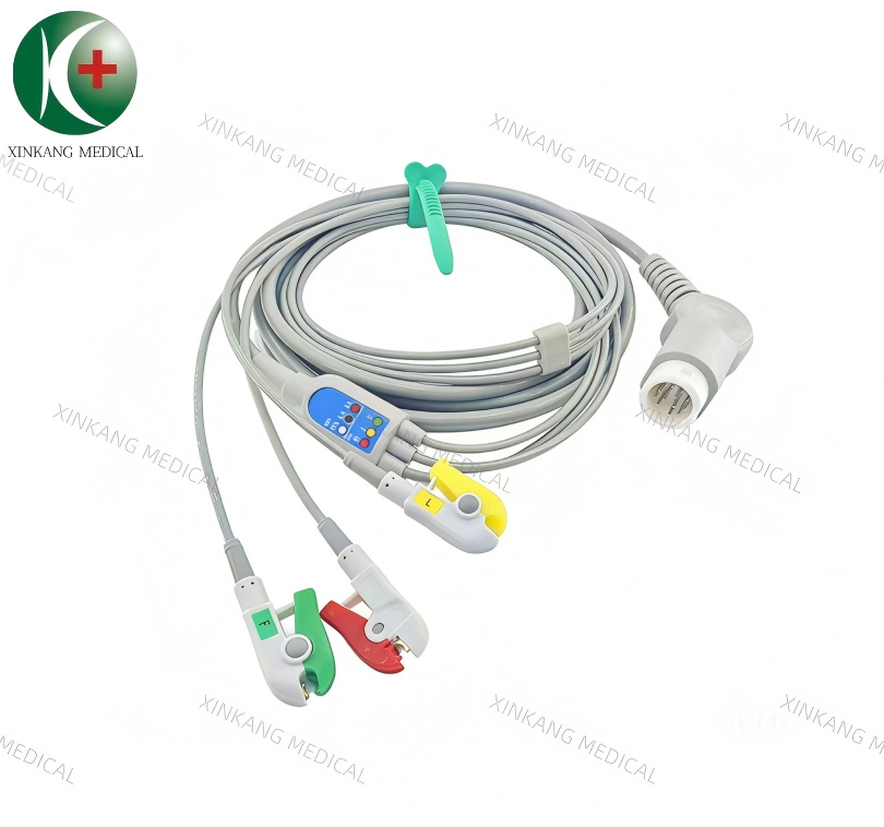 Compatible Nihon Kohden 12 Pin ECG Cable 3 Leads Clip Type IEC 兼容日本光电12针 一体三导心电导联线 夹子 欧标